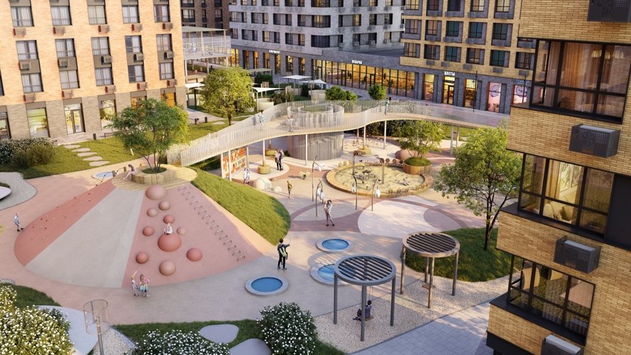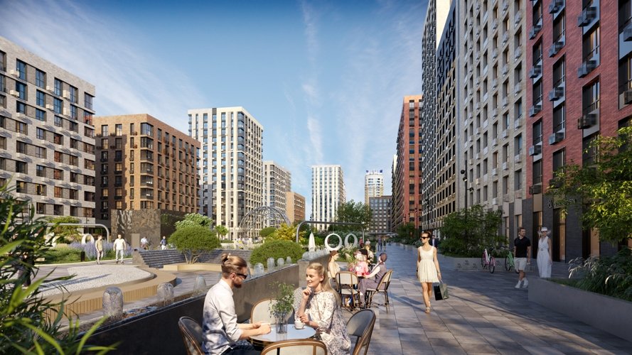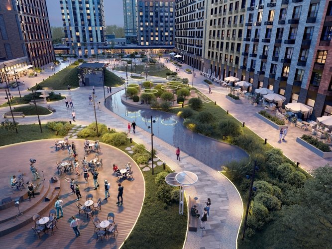 Представьте себе пространство, где взгляд встречается с архитектурной эстетикой, в воздухе витает аромат кофе из местной кофейни, щебет птиц и детских голосов сливается воедино. Здесь уютно и спокойно, но при этом рядом кипит жизнь. Здесь не надо никуда спешить. Здесь соседи здороваются и улыбаются. Здесь хочется остаться. Представили?