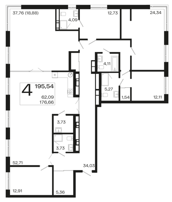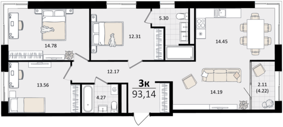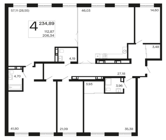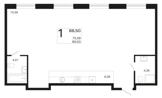 Площадь от 88.5 м2