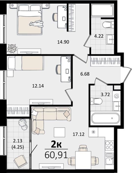 2 комнатные