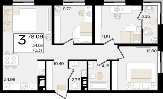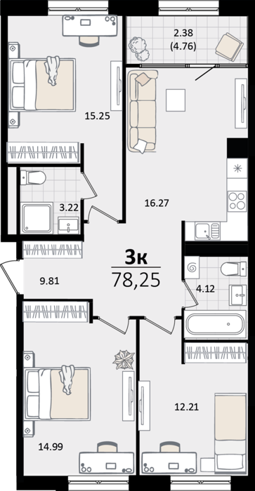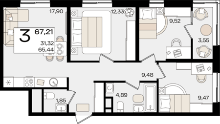3 комнатные