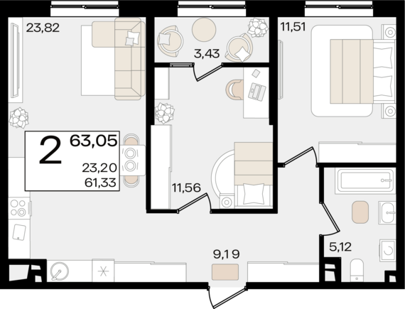 Площадь от 63 м2