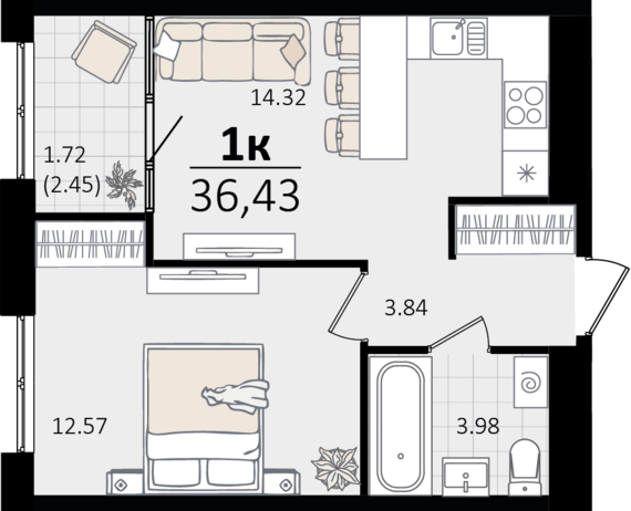 1 комнатная