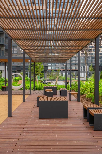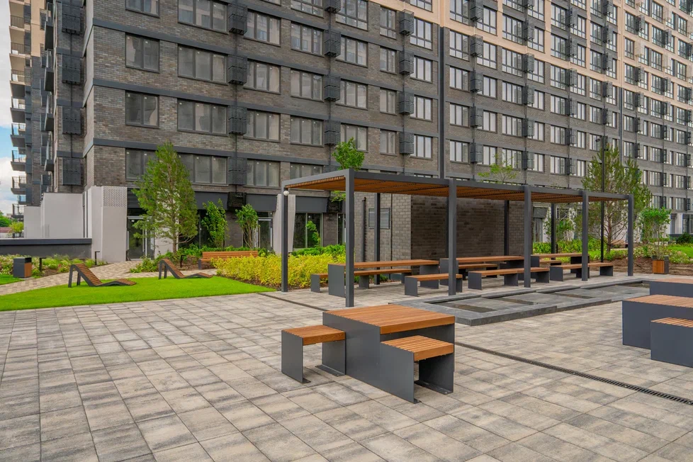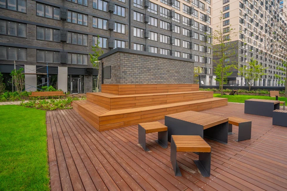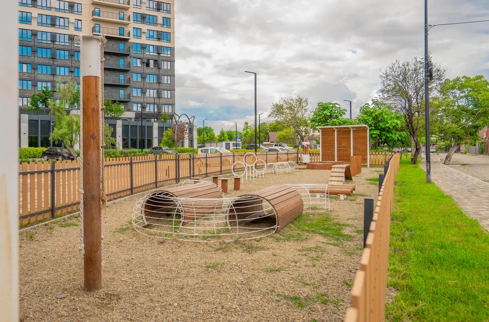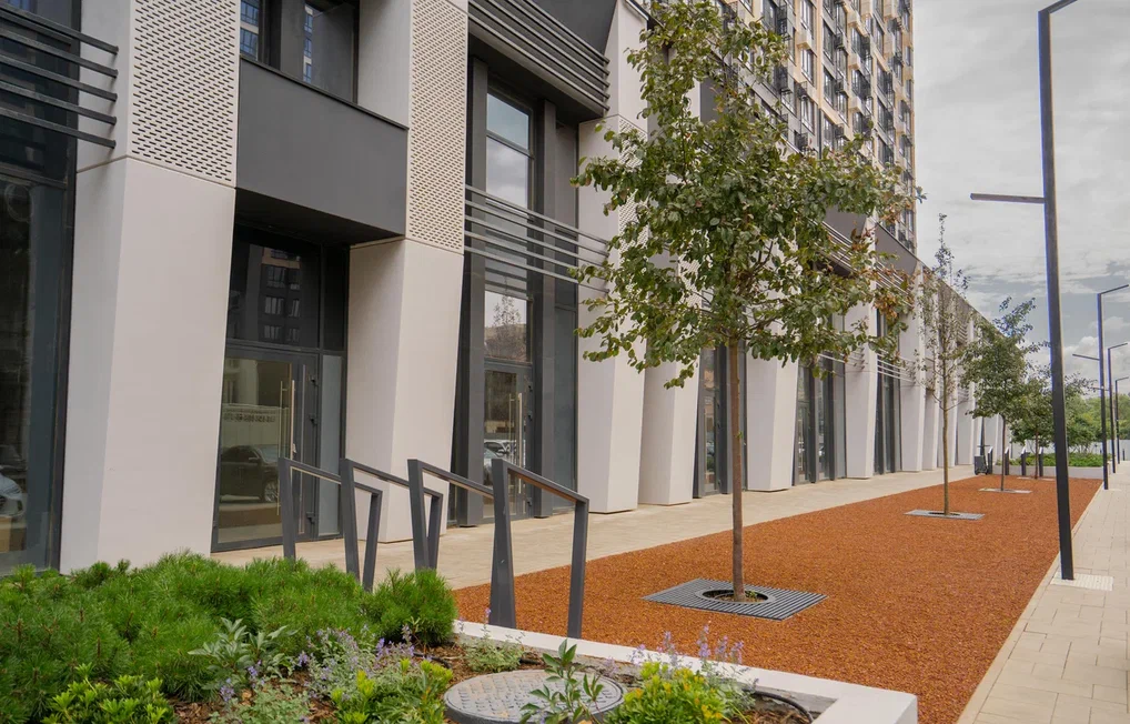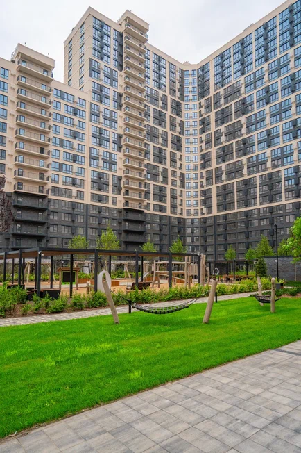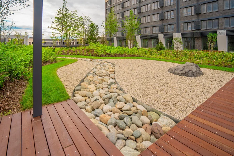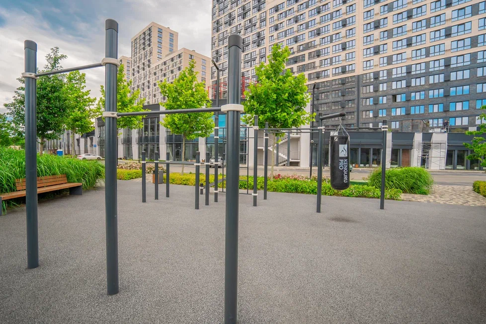 Ваш двор в ЖК «Гарантия» — это просторный парк с японскими кленами, цветущими сакурами и уютными зонами отдыха у фонтанов. Здесь есть всё для активного отдыха: футбольное поле, теннисные корты и йога-платформа на берегу озера с живописной набережной. Круглосуточная охрана с системами видеонаблюдения обеспечивает безопасность и спокойствие. А на всей территории комплекса действует бесплатный Wi-Fi.