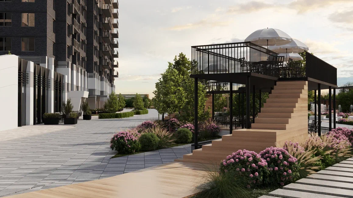 Продуманная общественная среда комплекса включает в себя как деловые кластеры, оборудованные для различных бизнес-задач, так и развлекательные и досуговые пространства, где вы можете работать, принимать посетителей или просто заниматься своим любимым делом.