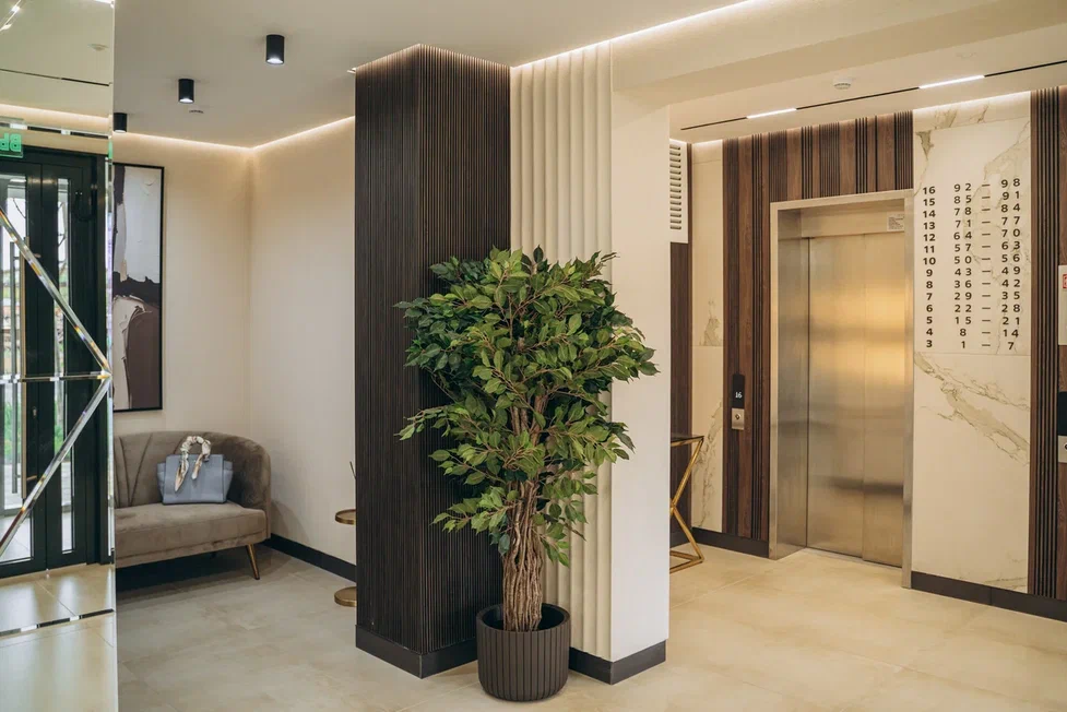 В дизайнерских холлах вас 24/7 встречает персональный консьерж, обеспечивающий комфорт и безопасность. Современные высокоскоростные лифты напрямую связывают все этажи с подземным паркингом, делая перемещение бесшумным и удобным. Так же в холлах оборудованы специальные колясочные комнаты.