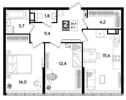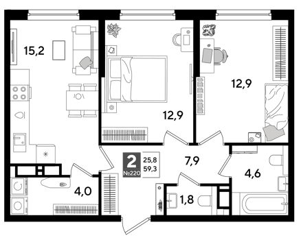 2 комнатные