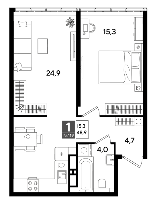 1 комнатные