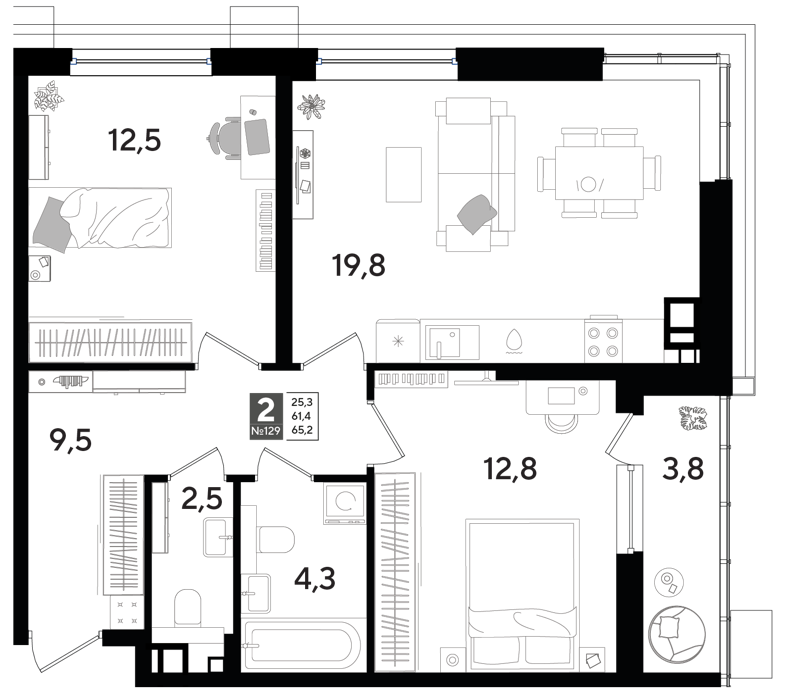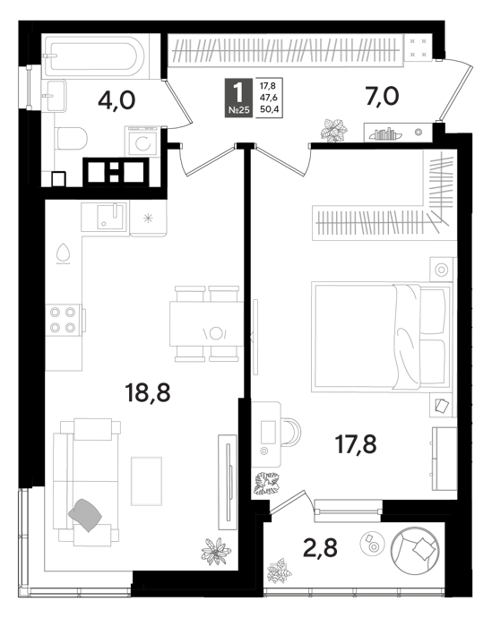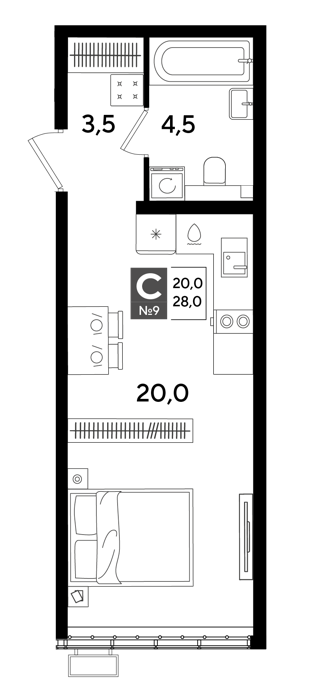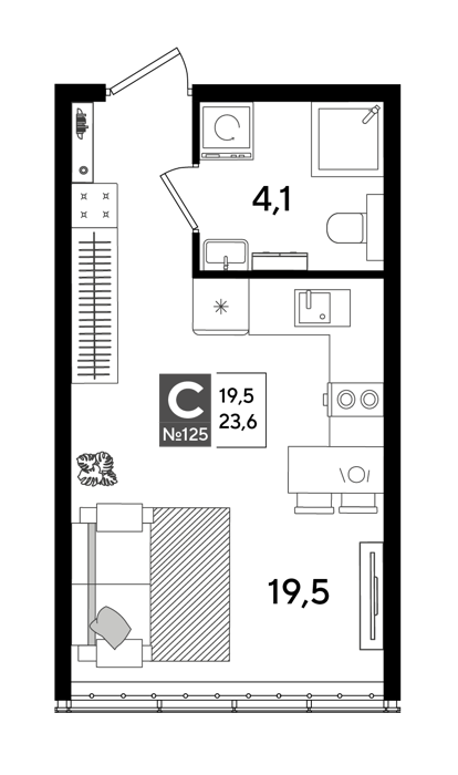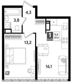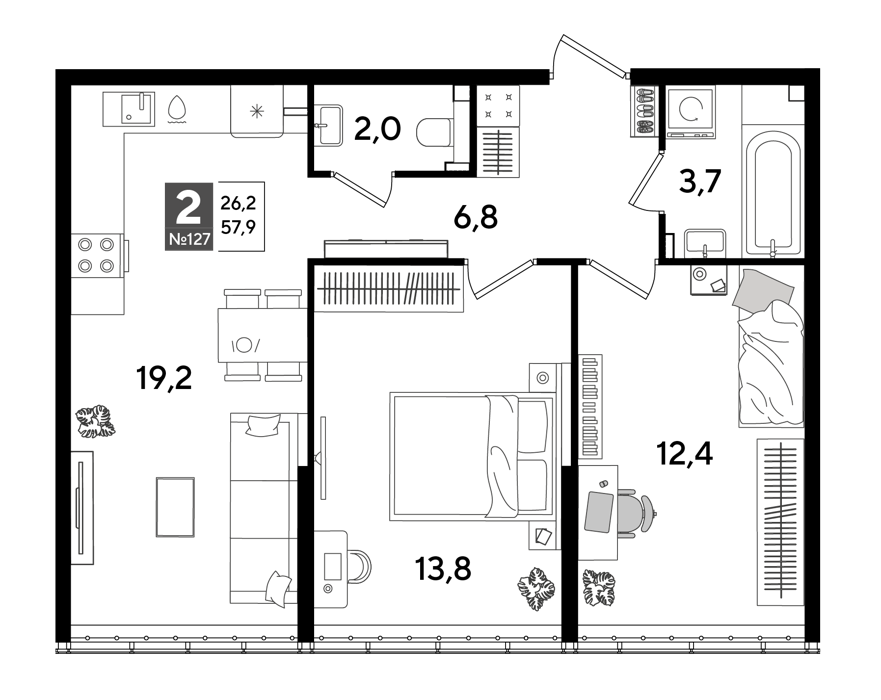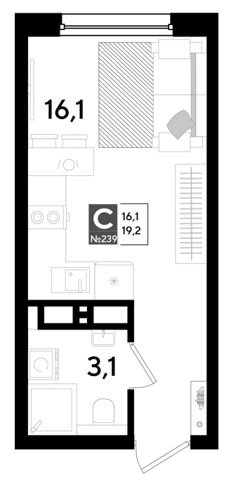Площадь от 19.2 м2