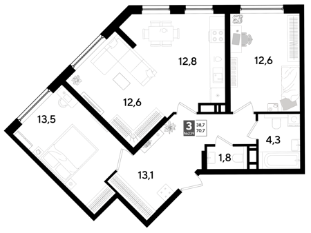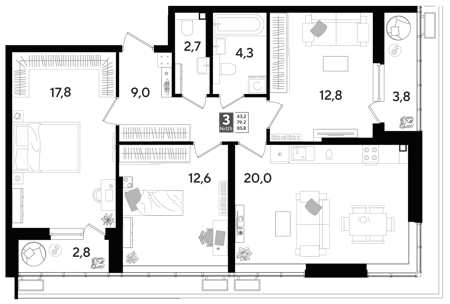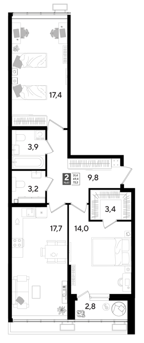 Площадь от 69.4 м2