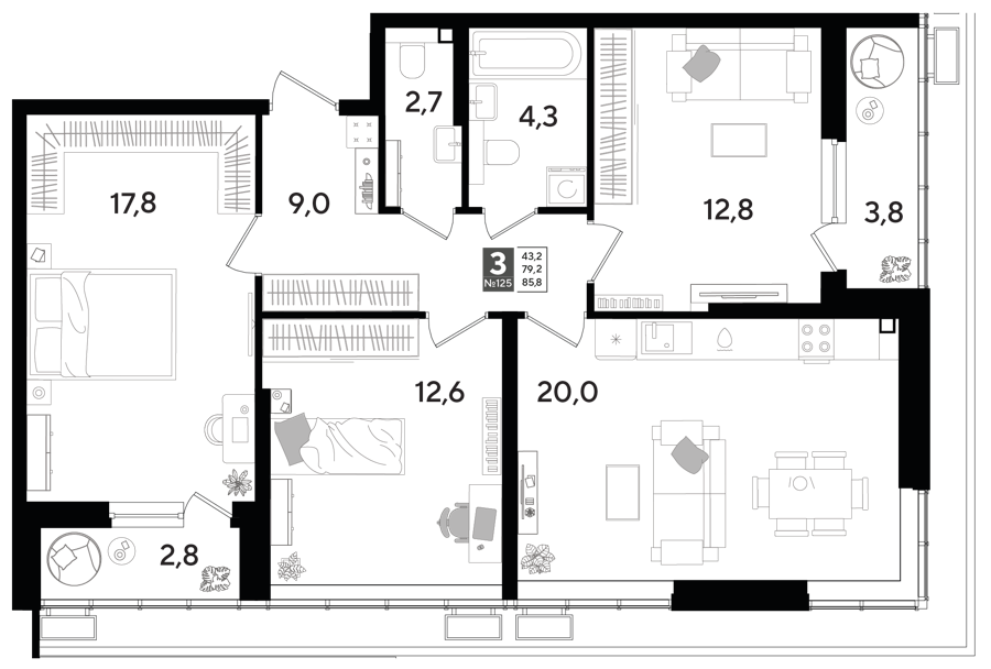 3 комнатные