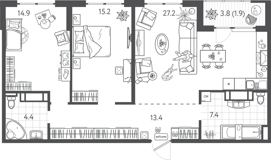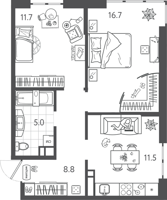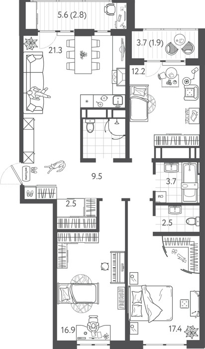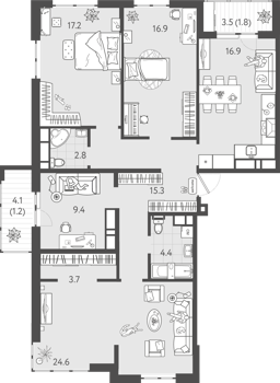 На сайте не весь каталог. Укажите параметры, мы подберем вам идеальную квартиру бесплатно!