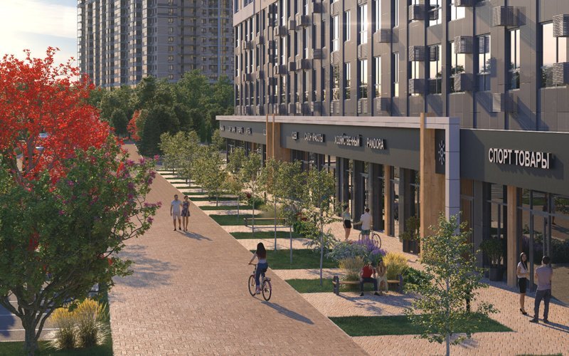 Не покидайте территорию дома, чтобы выпить кофе с круассаном, сходить на семейный ужин в ресторан или отдать пальто в химчистку. Здесь организован самодостаточный коммерческий кластер, разделенный на тематические зоны: супермаркеты и винотеки, детские развивающие центры и шоурумы, кофейни и пекарни, пункты выдачи и сервисы, стоматологии и частные клиники – здесь есть всё.